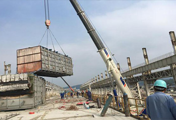 2017年9月18日福建尊龙凯时上克不锈钢有限公司冷酸炉壳吊装就位,,,,,标志着冷酸线安装施工开始。。。。。。