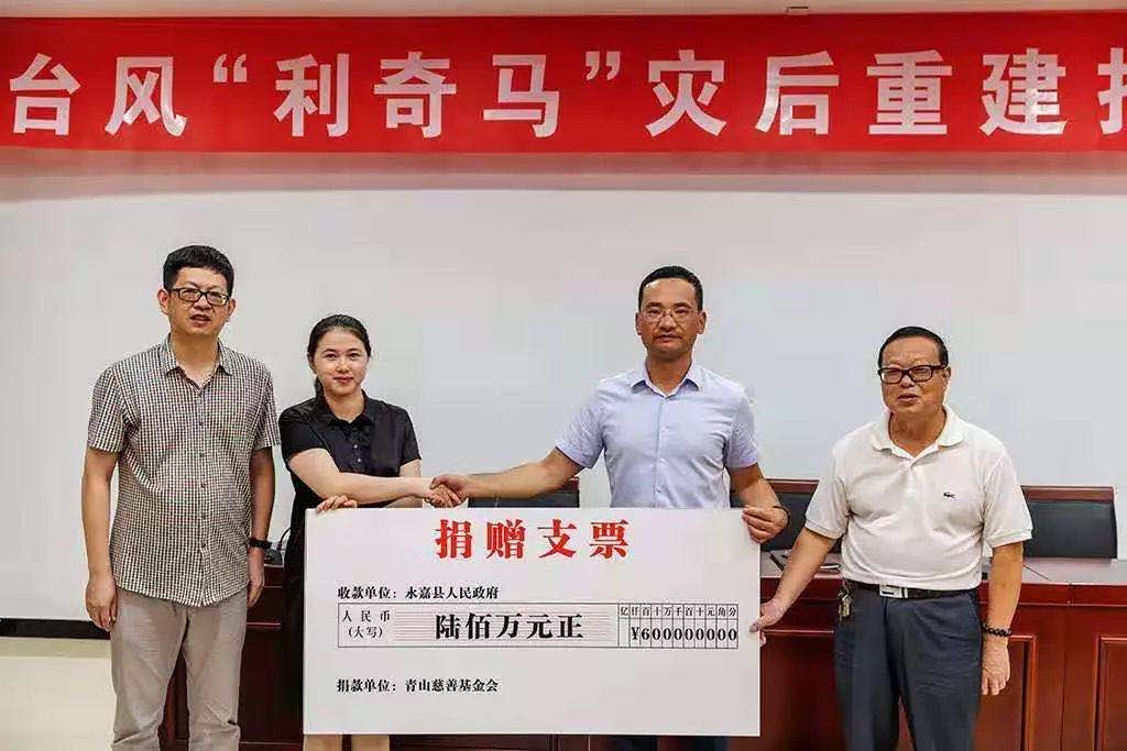 2019年8月10青山实业向永嘉灾区捐款600万